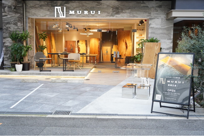 2021年より家具の製造販売事業に参入。レジンテーブルブランド「MURUI」を立ち上げ、2022年5月より国内最大級の銘木市場がある「鳥飼銘木町」に製造拠点を移し、10月には南堀江店をオープン。