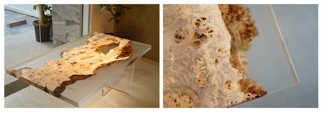 ~美しい自然の造形を持った天然木とクリアレジンを掛け合わせたレジンテーブル~。