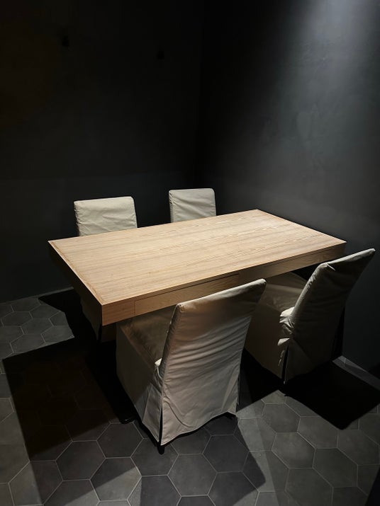 照明も暗く、中央の焼き台にスポットライトが当たる造り。