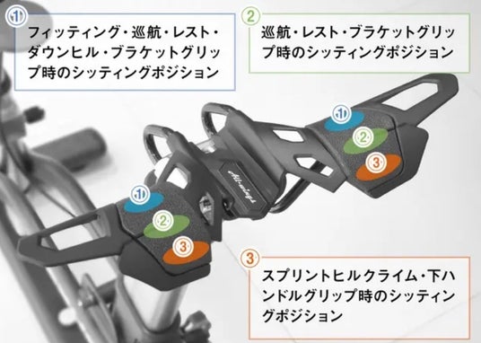 また下り坂や上り坂、速度を上げる時など、体のフォームを変える時も常に坐骨を水平で支えられるように、座面に3方向の角度付けで構成。