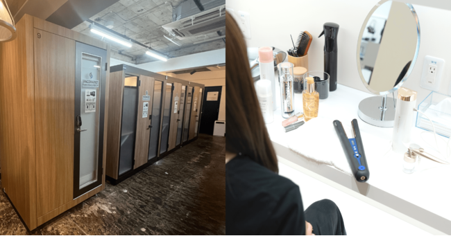 仕様:対象エリアのRemoteworkBOX内にお化粧用の鏡とブラインドカーテンを設置