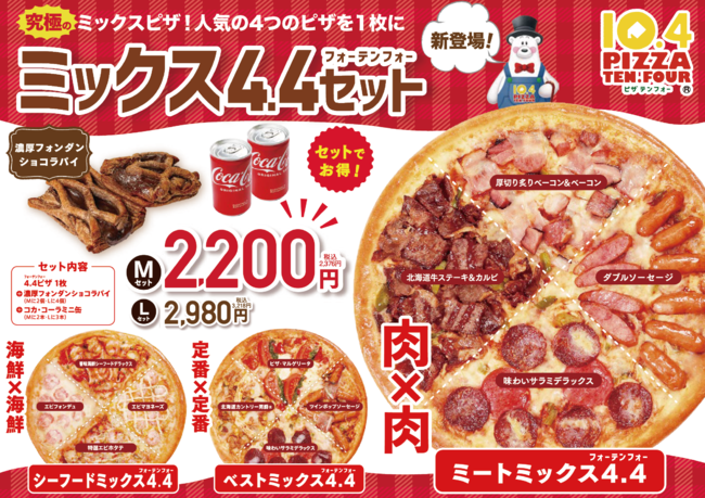 北海道発!宅配ピザ「テン.フォー」を運営する株式会社テンフォー (本社・北海道函館市/代表・高橋仁志)は、2022年2月1日から「究極の」ミックスピザ3種を新発売。スイーツ&ドリンク付きセットでご提供いたします。