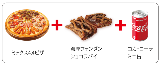 ミックス4.4ピザ(M)+濃厚フォンダンショコラパイ2コ+コカ・コーラミニ缶2本