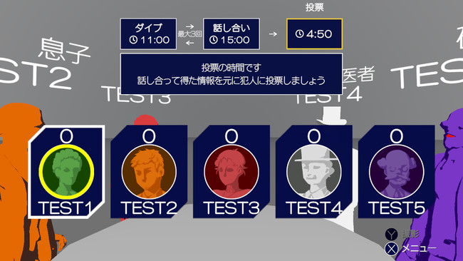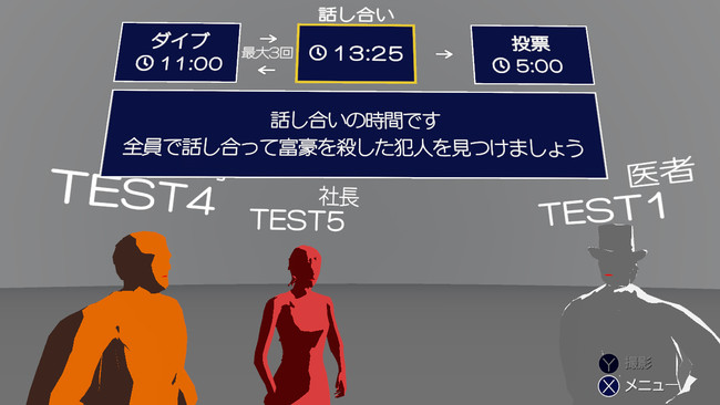 犯人を追体験したプレイヤーは、時には嘘を交えながら犯人だとばれないよううまく立ち回りましょう。