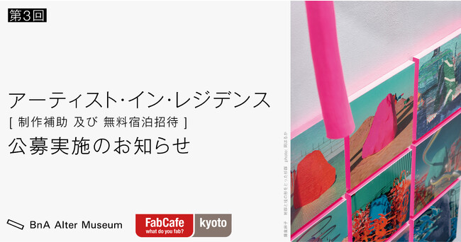 アートホテルBnA Alter Museum (京都市下京区天満町267-1)では、FabCafe Kyotoと共同で第3回目となるアーティスト・イン・レジデンス公募を実施します。