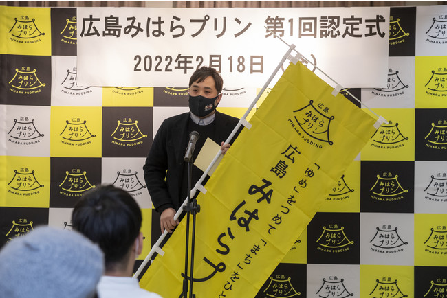 認定デザートプリンを代表して「むすび古民家カフェ&宿」の田中裕士さんは、『三原は素敵な場所が本当に多くて、美味しい食材、美味しい素敵なお店が沢山ある。そんな三原が私は大好き。このプロジェクトを機に、全国の方に三原の良さを知っていただく第一歩になれば』とプリンに込めた三原への愛とプロジェクトへの期待をお話されました。