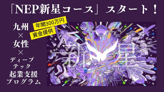 九州地域でディープテック起業を志す女性を対象に、毎月約25万円の活動費の提供を行う「NEP新星コース」の公募が開始されました。