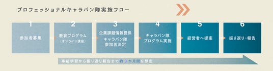 キャラバン隊:1.経営者ディスカッション・現場見学(2h/社)2.提案プレゼンテーション(1.5h/社)