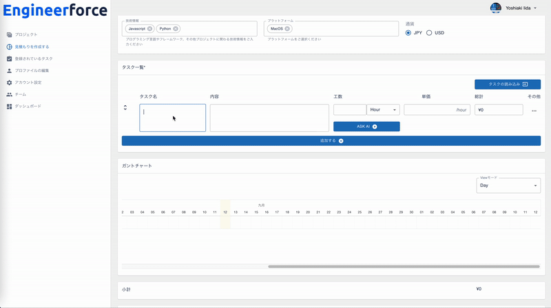 私たちはSaaSプロダクトとして、見積もり工数のナレッジシェアを行い、エンジニアの見積もり作成について効率化を図るDXツールを提供しております。クラウド上で見積もり工数データを一元管理することにより、スムーズなナレッジ共有を実現し、属人化を防ぎます。