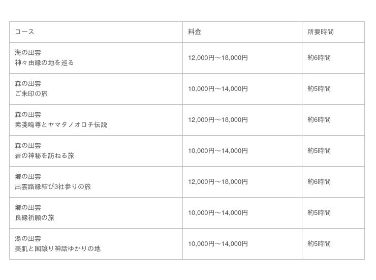 ■森の出雲~素戔嗚尊とヤマタノオロチ伝説 料金(所要時間:6時間)