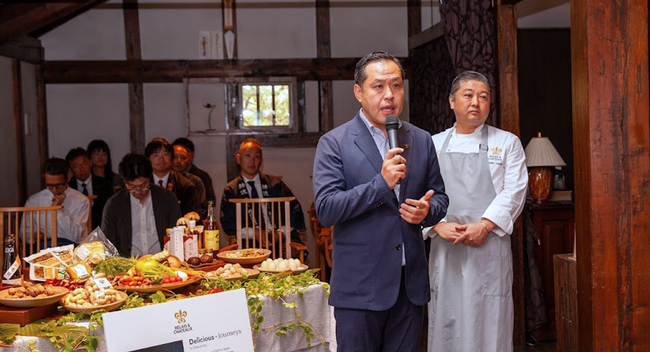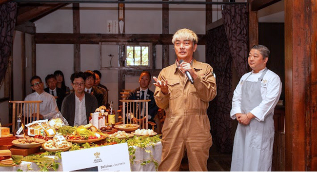 この地域には本当にいい生産者さんが多く、古くから質の高い食材をつくってくれている生産者さんもいます。私が特に強調したいのは、次世代の若い生産者とシェフたちです。ルレ・エ・シャトーのシェフたちも同様に、彼らは鳥で例えると、まるで卵を抱えるように新しい可能性を秘めています。それをいつか世の中に羽ばたかせ、次の世代に残していきたいと、私たちや多くのシェフたちは思っています。私たちの会社も、次の世代に建物や文化、さらには地域の食を継承させるという目的で活動しています。今回のイベントでも、素晴らしい食材が提供されていますが、若手の生産者さんが作ってくれている食材もたくさんあります。私たち料理人が次の世代に何を託すのかというと、食材がなければ、私たち料理人は何も作れません。そのためにも、これからも若手の生産者をサポートしながら、品質いい食材を使った美味しい料理を地域の人々に提供していきたいと考えています。