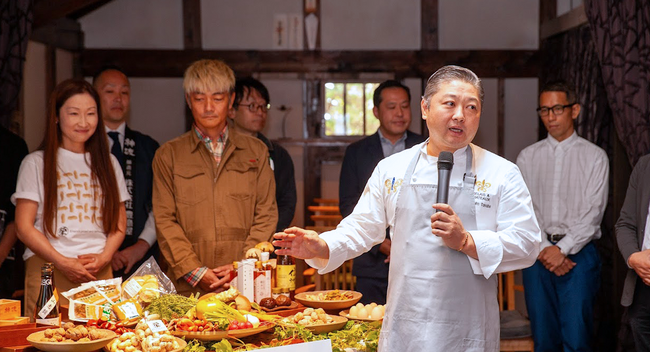 2023年10月11日(水)、ルレ・エ・シャトーに加盟するフレンチレストラン「ヒカリヤニシ」にて、主催者の扉ホールディングスがイベント概要を説明する記者発表会を開催いたしました。参加シェフや、当日使用される信州の伝統野菜、発酵食品、日本酒・ワイン・味噌などの醸造食品、食器などの工芸品等の地元生産者のご紹介のほか、展示や試食、Q&Aやフォトセッションなどもおこないました。