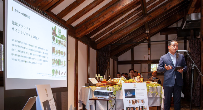 私たちの会社はウェルビーイングな地域づくりをめざしています。そのためには、地域と絡み合って、地元のいいモノやコト、歴史文化、自然環境を保っていくことが不可欠です。今回、松本の誇りであり市民が大切に守ってきた国宝松本城を舞台として使わせていただく私たちの目的は、信州の豊かな食材や発酵文化、高品質な日本酒とワイン、そして素晴らしい工芸品などを、その生産者の方々とともに一緒に価値あるものとして世界に発信していくことです。また収益の一部の寄付することで、松本城の文化財としての価値を保存・維持していくことも目的の一つです。観光のニーズが量から質へとシフトしている今、地域の貴重な資源を高付加価値に変えていくことが重要です。このイベントでもビジョンと想いを共有するルレ・エ・シャトーの同志とともに、松本城をはじめ、この地域の多面的な魅力をゲストに感じていただき、地域ブランドの価値を高めることで、松本城の保存や地域産業の担い手の確保につなげ、次の世代にこの素晴らしい地域資源を引き継ぎ、サステナブルな地域づくりに貢献していければと願っています。また私たちが2003年から始めた地域のブランド価値を高め、サステナビリティを追求する活動が今、20年目という新たな節目を迎え、私たちは、この松本城プレミアムディナーイベントを機に、より一層、地域と企業が共に繁栄するサステナブルな未来をめざしていきます。