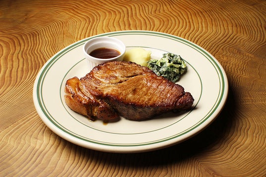 マロリーポークステーキは、「分厚すぎて漫画のような豚の塊肉」として、オープン当初からSNSや各種メディアで一気に話題に。巨大な肉の塊という見た目のインパクトと、真空低温調理で実現した絶妙な火入による柔らかな豚肉で人気を博した。