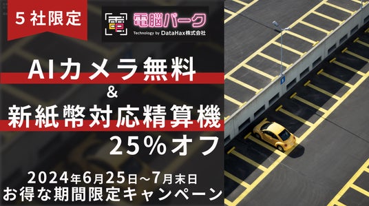 DataHax株式会社(本社:東京都渋谷区、代表取締役:大西 洋平太 以下、当社)は、2024年6月25日(火)より、「電脳パーク」導入事業者様へ、AIカメラと新紙幣対応精算機がお得に購入できるキャンペーンを開始いたします。