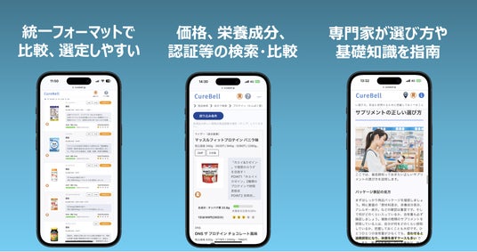 私たちは従来、サプリメントを選定する際、各社、各商品で異なるフォーマットでの情報の閲覧、比較を強いられていました。CureBellの一貫性ある統一されたフォーマットで、様々なポイントでサプリメントを検索、比較することが可能となりました。