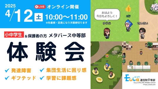 2025年4月26日に開校予定の「EuLa通信制中等部」では、小中学生とその保護者を対象に、メタバース体験会を開催します。