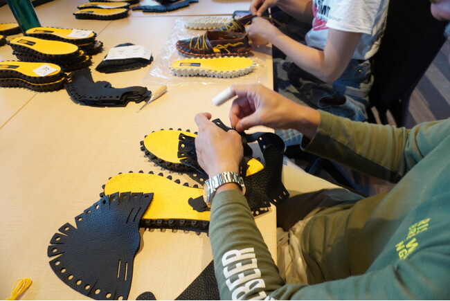 着用開始に先立ち2023年7月24日、川村通商が運営するワークショップを開催。ホテルスタッフ自ら、自身が着用するフットウエアを作成しました。