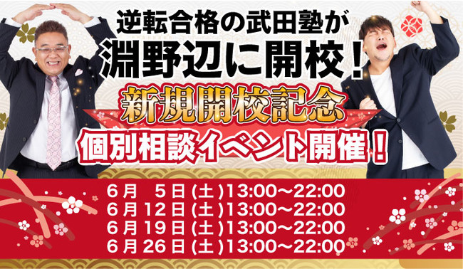 武田塾淵野辺校の開校を記念して、淵野辺校では個別相談イベントを実施いたします。
