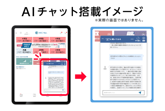 これまで「MEC Net.」の機能としては不足しており、しかし学習をする上で必要とされていた「調べたいことをすぐに調べられる」という部分をサポートするために、AIチャット搭載が決定しております。