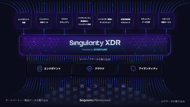 自律型のAIをエージェントに搭載したSingularity XDRは、テラバイトの容量に対応した高速なデータレイクであるクラウド上次世代データプラットフォームをベースに、エンドポイントだけでなく他のセキュリティスタックとの連携でシステム全体のセキュリティの強化を可能にしています。
