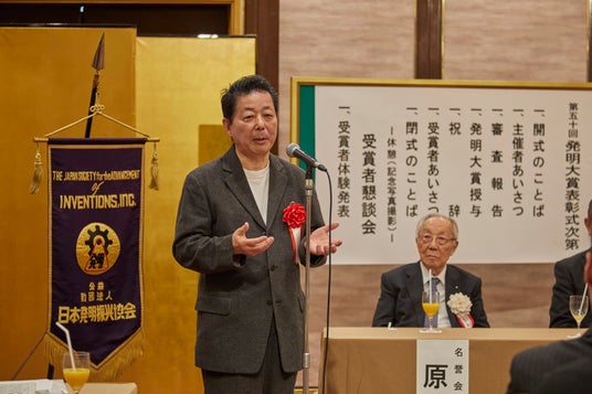 3月13日(木)に東京都港区の明治記念館で開催された表彰式および懇談会では、クールフライヤー創業者・開発者の山田光二代表取締役会長が登壇し、関係者の皆様への感謝とともに、開発の苦労話や今後の展望などについてスピーチを行いました。