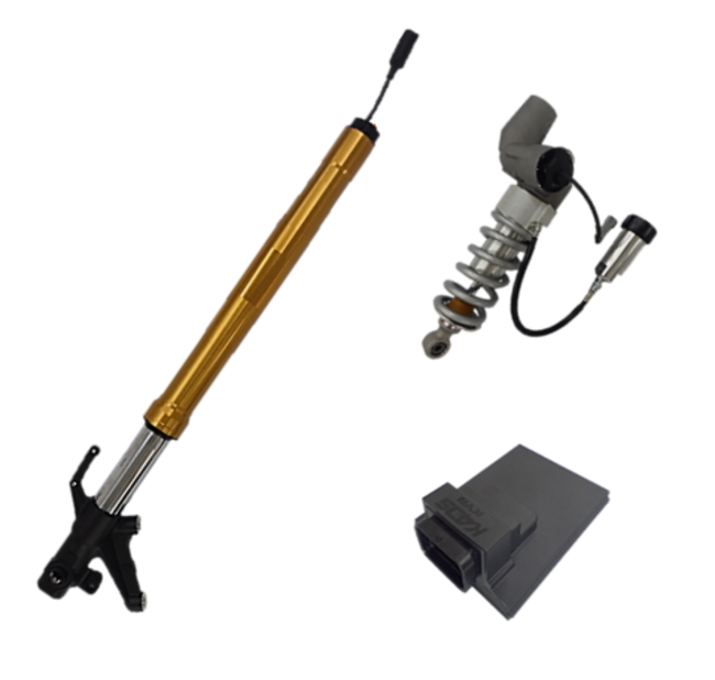 “KADS”は、バイクの挙動と地面からの入力を各所に取付けたセンサとECUでリアルタイムにデジタル処理し、高い応答性を持つソレノイドバルブサスペンションでタイヤが地面に吸い付くような接地感と操縦安定性をお客様に提供します。