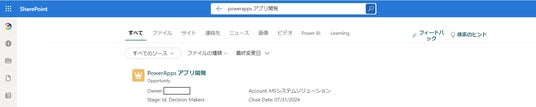 MicrosoftSearchの設定の為、SharePointOnlineでの検索でも利用可能