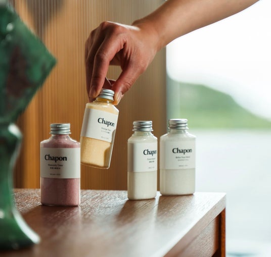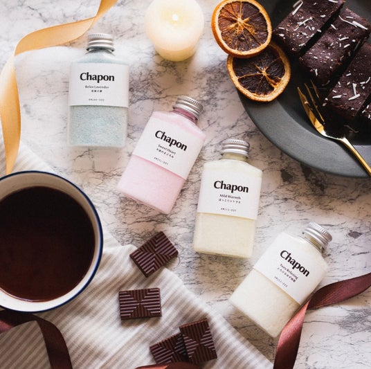 Chaponは「今日の疲れを癒やしたい」そんなバスタイムに寄り添う、植物エッセンスたっぷりの天然アロマ入浴剤として誕生。「喧騒忘れる、しあわせタイム。」というブランドコンセプトのもと、天然アロマ100%の贅沢な香りで忙しい日常を忘れる、特別なくつろぎの時間を提供しています。累計販売本数は25万本を突破。三越伊勢丹やBIRTHDAY BARなどの全国のギフト専門店で取扱開始。バスソルト初グッドデザイン賞受賞、Amazon・楽天 部門ランキング1位獲得。