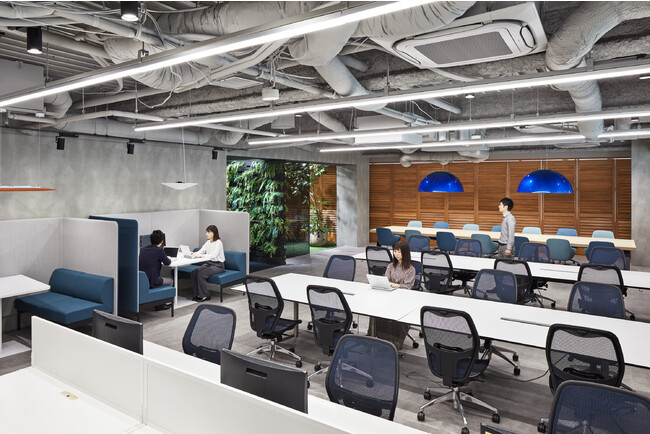 背景:コロナにより生活スタイル、働き方も大きく変化しオフィスの価値が新たに問われる時代に入り、リモートワークが確立。オフィスの在り方が重要視される中、光の価値を提案・体感できるライブオフィスを検討することとなった。オフィスが社員の生産性やエンゲージメントを高める場所となるよう、仕事の内容・場所・時間に応じた光環境を追求。自然光を再現可能な次世代調光調色LED照明器具『Synca(シンカ)』の光により「超集中ブース」「コワーキングゾーン」「アウトドアリラックスゾーン」など「これからの働き方」にフィットする空間をデザインした。オフィスで働く意味、 幸福度、生産性向上に貢献できるインテリアと光の融合でニューノーマル時代のオフィスの在り方、インテリアと光の在り方、使い方を提案し、オフィス作りのヒントを与えることができるショールーム兼オフィスを作り上げた。木毛セメント板やOSB合板等SDGsや健康を配慮した素材も多く利用している。