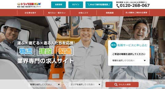 物流・建設・製造業界専門の求人サイト。商用車専門オンラインプラットフォーム「トラック王国」の運営で培った長年の業界経験から、求職を希望される方と求人募集企業様のマッチングをサポートするほか、安価で始めやすい求人掲載を提供しています。