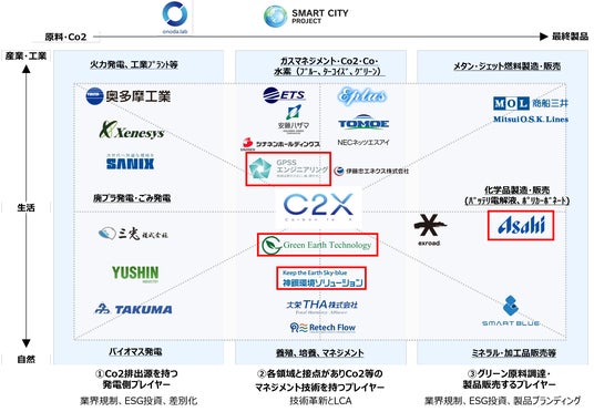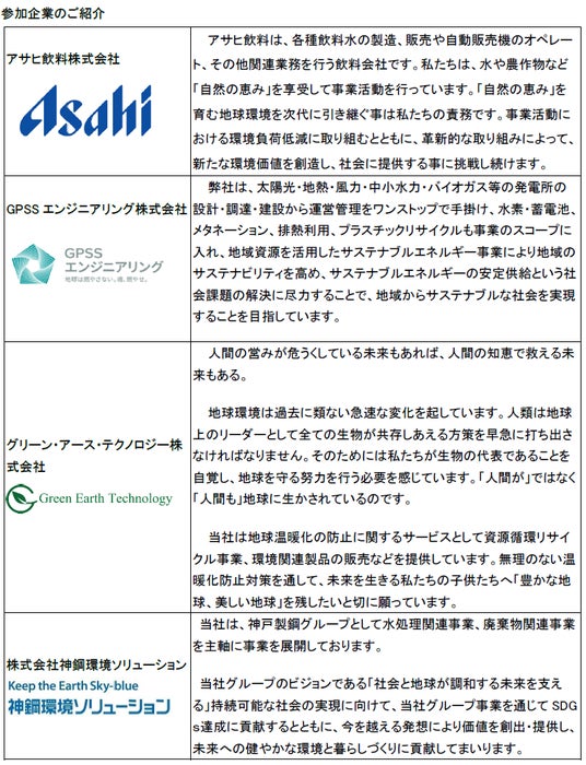 この度、アサヒ飲料株式会社、GPSSエンジニアリング株式会社、グリーン・アース・テクノロジー株式会社、株式会社神鋼環境ソリューションの4社が再エネ主力時代における循環型で持続可能な脱炭素社会の実現に向けたオープンイノベーションプラットフォームのC2X(Carbon to X)プロジェクトに参画することになりましたので、お知らせいたします。