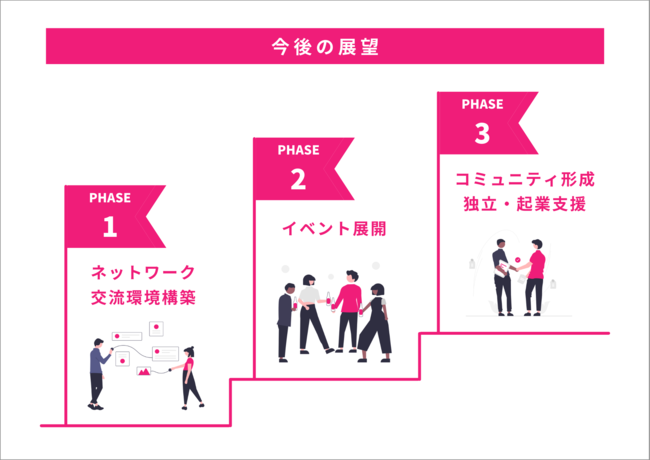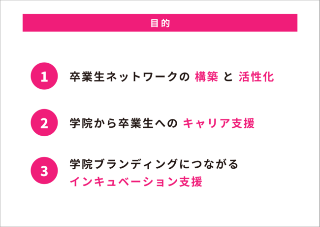 卒業生ネットワーク構築、コミュニティ形成、キャリア&インキュベーション支援の3つを目指す!