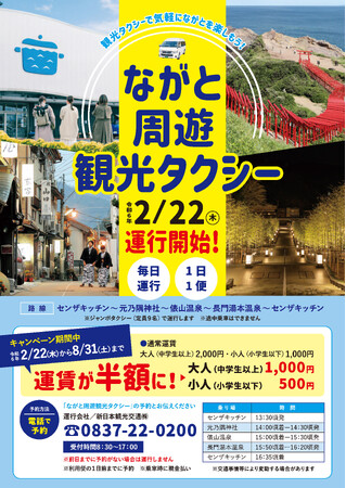 元乃隅神社や長門湯本温泉などを便利に結ぶ「ながと周遊観光タクシー」の運行について