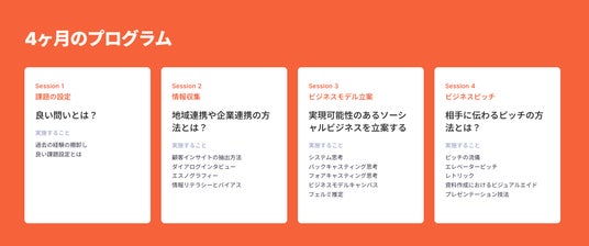 実際の地域課題を起点としたビジネスモデル構築、外部講師によるピッチ支援、フェルミ推定による実現可能性検討など、実務レベルのスキルを実践的に学びます。