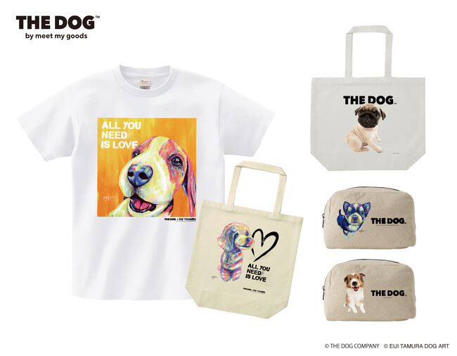 「THE DOG™️ by meet my goods」では、THE DOG™️オリジナルグッズをはじめとし、ドッグアーティスト「EIJI TAMURA」氏とのコラボレーション「THE DOG™️×EIJI TAMURA」を筆頭にコラボレーショングッズの販売も行います。 Tシャツ、トートバッグなどアパレルアイテムの他、キャンパスアートやアクリルブロックなどのおしゃれなインテリアアイテムまで幅広いラインアップを取り揃えています。