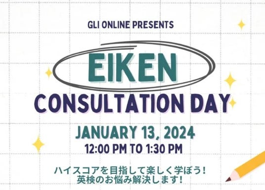 「Global Learner’s Institute」(本部:東京都港区、代表:鏑木稔)(以下GLI)が提供するオンライン英会話「GLIオンライン」が2024年1月13日(土)にこれから英検に挑戦しようとする子供たちに向けて、英検事前対策を開催いたします。