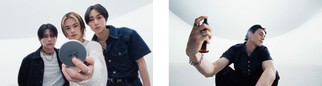 INIメンバー全員のヘアメイクは河北裕介が自ら手がけ、新製品を用いたナチュラルで洗練されたヘアメイクに。