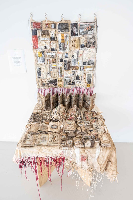 多様な時代や国で使用された紙や布、プラスチックなどの素材を用いてつくった“古さや汚さを感じる本”で表現したインスタレーション作品です。古さや汚さに対して愛着を感じる作家独自の世界観が凝縮された本は、開くことによって誰でもその空想の世界に飛び込むことができます。汚れたら捨てるという新品を大量に生産する社会の常識を覆す“汚さから始まる”という逆説的な世界観の魅力が高く評価されました。