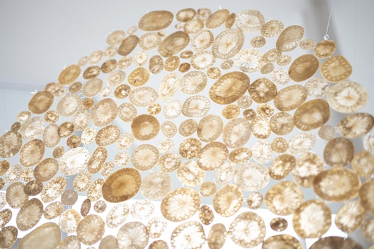 害獣駆除された鹿などの野生動物の皮を使用した作品です。人が害獣として駆除する野生動物の死体や皮が使い尽くされることなく山などに捨てられている事実に心を痛め、実際に動物の解体にも参加しながら、生命に向き合おうとする想いがアートによって表現された点が高く評価されました。作品には15頭ほどの野生動物の皮が使用されており、毛が残っていたり、動物の生きていた痕跡が残っていたりと、皮ごとの異なった表情を確認することができます。