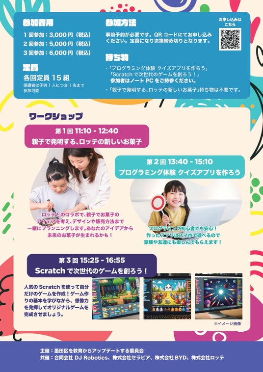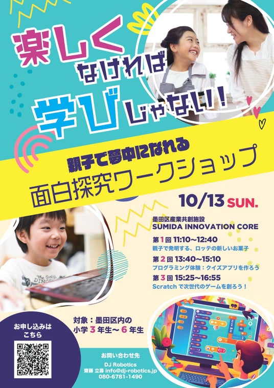 墨田区を教育からアップデートする委員会は、2024年10月13日(日)、東京都墨田区産業共創施設「SUMIDA INNOVATION CORE」にて、小学3年生から6年生を対象にした「面白探求ワークショップ」を開催いたします。本イベントは、創造力や探究心を刺激し、親子で楽しみながら科学や技術、プログラミングを体験できる内容となっています。