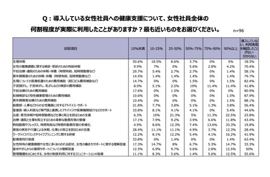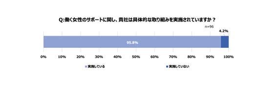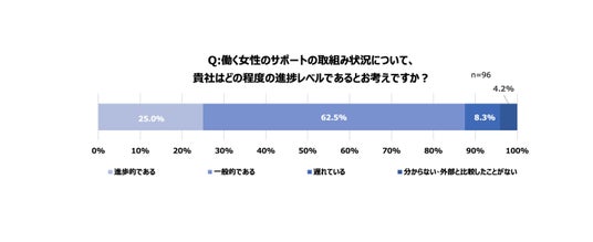 - 95.8%の企業が女性の健康支援を実施。しかし、女性へのサポート状況を「進歩的である」と評価したのはわずか25.0%に留まる。