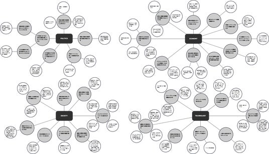 8月号では以下のようなPEST分析のダイアグラムを共有し、その中から10のトピックを発表しました。