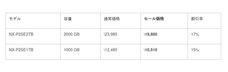 Nextorageは6月2日より開催されるAmazonタイムセール祭りにて、下記製品をセール価格にて販売することをお知らせいたします。