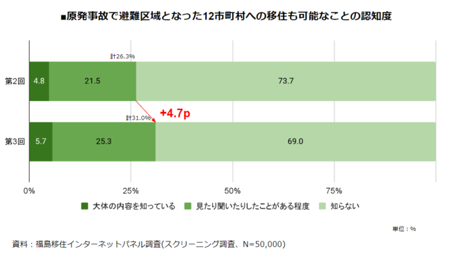 ■ 首都圏等で3割へと、福島12市町村の移住への認知が拡大した