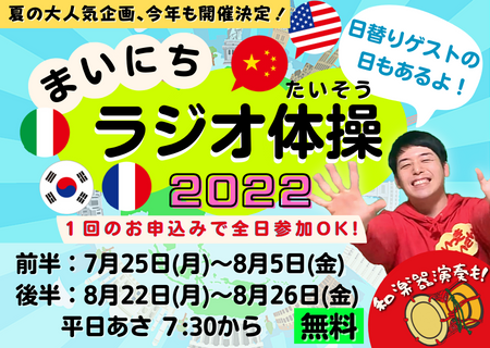 「世界旅行?お楽しみ体験も?―まいにちラジオ体操2022」