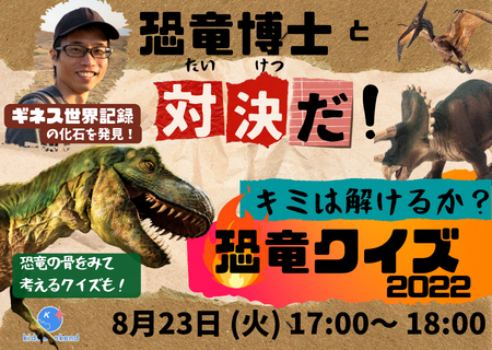・8月23日(火)17:00-18:00 「恐竜博士と対決だ!キミは解けるか?恐竜クイズ大会2022」