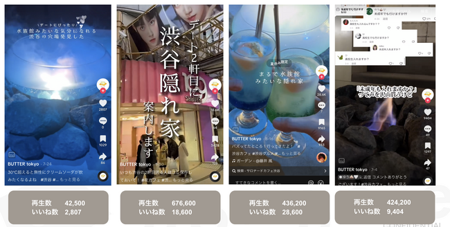 自社アカウントBUTTER tokyo ( https://www.tiktok.com/@shibuya_buttertokyo )は、