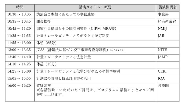 この講演会は、日本の計量標準を担う上記3機関が、計測分野の品質管理の際などに必要とされる計量トレーサビリティの普及・啓発を目的に、2011年度より毎年度開催しているものです。ISO 9001などのマネジメントシステム規格の要求事項の一つである「測定のトレーサビリティ」に焦点をあて、計量トレーサビリティについて正しくご理解いただくための情報を提供いたします。
