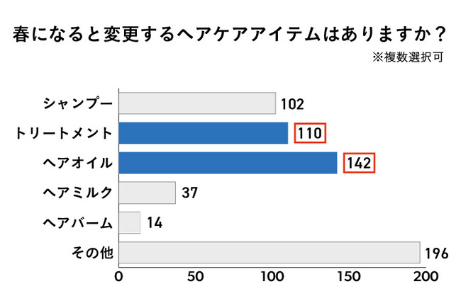春になると変更するヘアケアアイテムについては下記のような結果となっています。